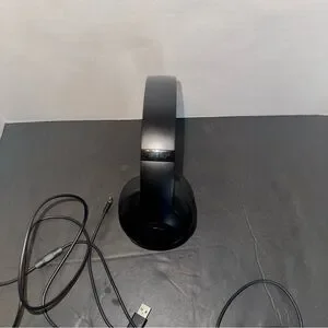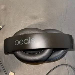 Sleek black over-ear headphones by Beats. Perfect for immersive sound. I have the bottom of headphones box, not the top.