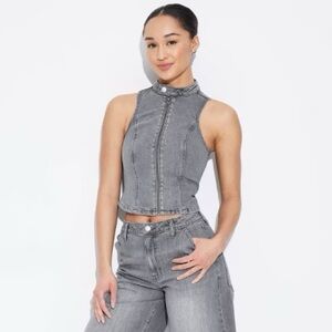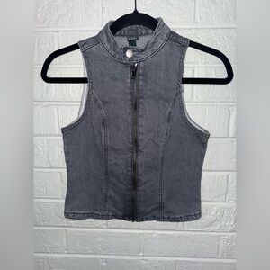 NWT WILD FABLE women’s zip up denim moto vest gray wash sz XXS ✨