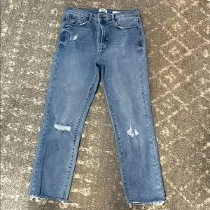 Chic straight leg jeans with subtle distressing. Ideal for everyday wear.