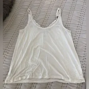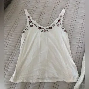 American Eagle Soft & Sexy White Tank Top with Floral Embroidery