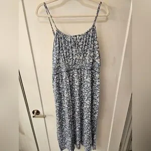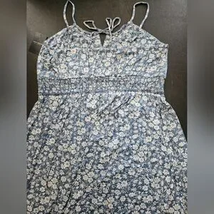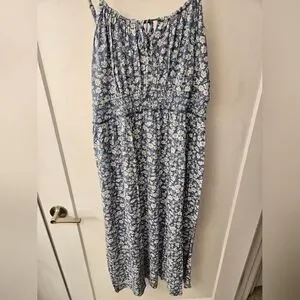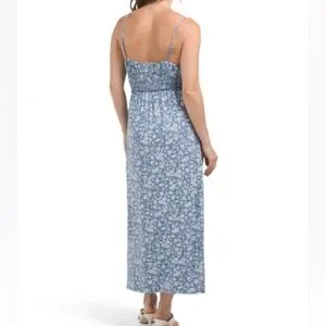 NWT - Lucky Brand Viscose Stretch Blue Floral Smocked Waist Maxi Dress -Size XL