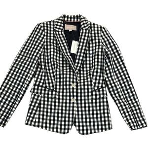 New Banana Republic Blazer Jacket Navy/White Checked Cotton Stretch Lined Size 4