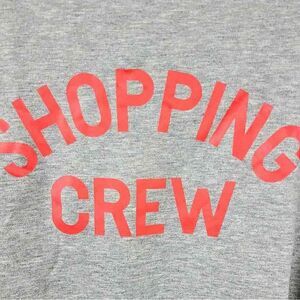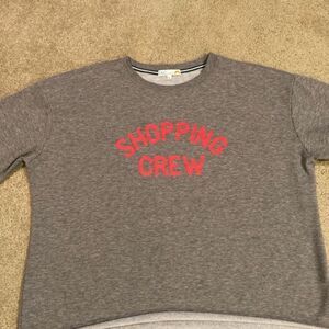 Soft and cozy crewneck sweatshirt with "shopping crew" on front; longsleeve;unfinished hem; oversized fit.