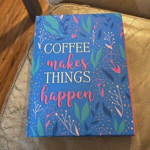 Brighten your workspace with this vibrant coffee-themed notebook. Featuring a lively blue and pink design, it's perfect for jotting down ideas and inspirations. 4 piece pen set included in bundle