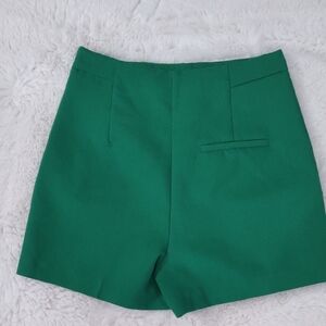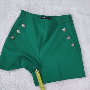 ZARA High Waisted Green Women's Shorts with Button Detail