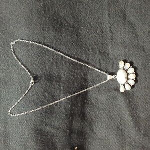 Silver Plated White Moonstone Gemstone Half Flower Pendant Statement Necklace. 18" long.
