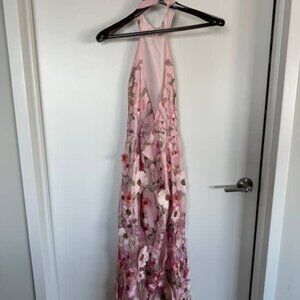 Unique Impression Pink 3D Floral Embroidered Halter Midi Dress