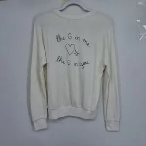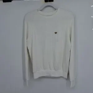 This chic white sweater features a charming heart design, perfect for a stylish and cozy look.