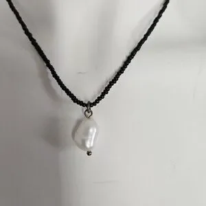 J. Crew Black Beaded Necklace with Pearl Charm