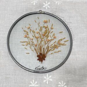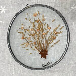 Vtg 70s Pressed Flower Suncatcher for Windows Walls or Altar Vesta
