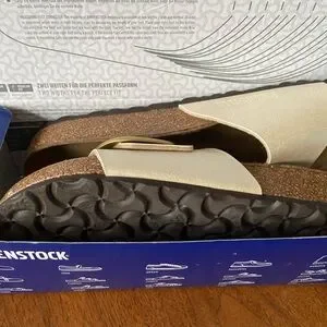 Birkenstock Madrid Sandals in Pearl White, worn once, decided they were slightly too big and went with a half a size smaller. These are basically BNWOT (brand new without tags) and as you can see they’re in excellent condition. These are size 40, equivalent to a size 9.