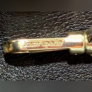 Features: It includes a zip closure, a lined interior, and typically features a slip pocket for organization. The front is adorned with the signature Kate Spade emblem logo plaque with a floating spade.