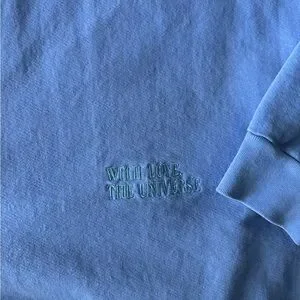 Blue Boys Lie embroidered sweatshirt. “I had to make you uncomfortable otherwise you would have never moved” embroidered middle front. “With love, the universe” embroidered lower left front. Boys Lie logo embroidered on back shoulder. In great condition! One size fits all. Fits like XL.