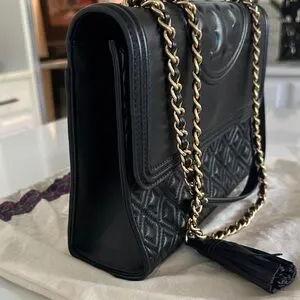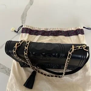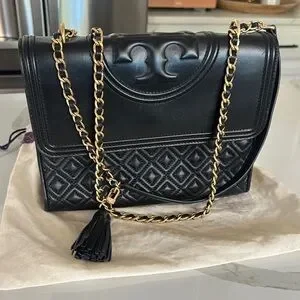 Tory Burch Fleming Large Convertible Bag Black Quilted Leather w/ Dust Bag