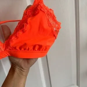 Vibrant orange bralette with delicate lace trim. Combines comfort and chic style.
