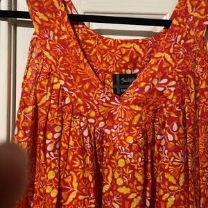 Embrace elegance with this vibrant orange floral midi dress. Perfect for any occasion, this dress combines style and comfort effortlessly.