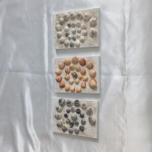 3 Pc Seashell Art, Beach Art, 3 Pieces 5x7 Wall Art, Hand Crafted Sea Shells