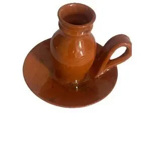 Vintage AR Cole Sanford Pottery Tobacco Spit Brown Candlestick Holder