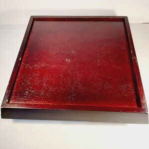 Tuscana Tiles Brown Walnut Wood Serving Tray with handles. The tiles are decorative on the base of the tray. This tray is part of a Tuscan decor it is rustic with scuffs. Perfect for serving wine and cheese. Italian villa "Fields of Lavender" is the photo name. The artist is James Wiens.