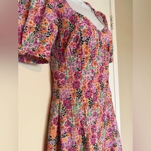 Step into style with this vibrant floral mini dress. Featuring charming puff sleeves, it's a perfect choice for any occasion.