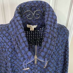 Coldwater Creek Navy Blue Eyelet Jacket Size 16 Zip Front Bomber Style Jacket