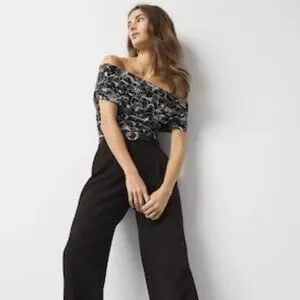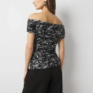 NWT WHBM BLACK and WHITE OFF THE SHOULDER LINED RUCHED TOP SIZE XS