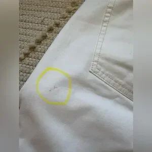 They are in excellent condition. Just have two stains ont he back of the pants as shown I photos . Haven’t tried to get them out as I have k it worn them twice.