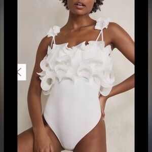 Size xs white free people bodysuit wi ehh ruffle detail. Worn once. In like-new condition.