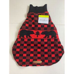 NEW Eddie Bauer Pet Red Black Buffalo Plaid Dog Sweater Size Large Holiday