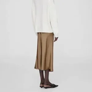 The Bar Silk Skirt in Taupe by Anine Bing is a bias cut, smooth silk midi skirt crafted in a double-faced silk charmeuse with a high waisted fit and and elasticated waistband.