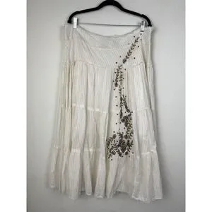 Waist 38 inches length 35 inches. In excellent condition no flaws. embroidered embellished bohemian coastal cowgirl metallic stripe striped floral skirt full flared
