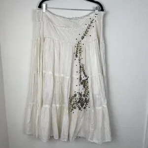 John Paul XL Skirt Tiered Embroidered Beaded Cowgirl Broomstick Full 100% Cotton