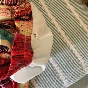 Embrace a bohemian vibe with this vibrant pleated skirt. Featuring a mix of red, blue, and cream hues, it's perfect for adding a pop of color to your wardrobe.