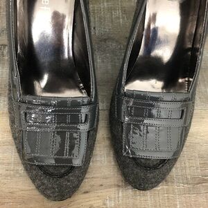 Jon Josef Gray Fabric Patent Leather Dress Pumps Size 8.5