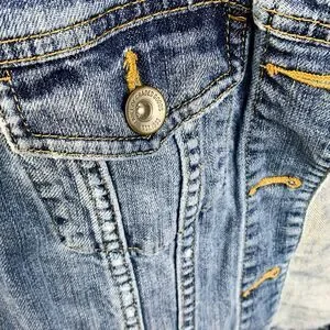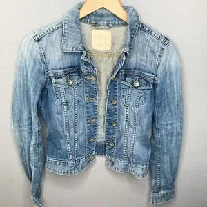 LOGG H&M Blue Faded Vintage Wash Distressed Denim Jacket Women Button Country