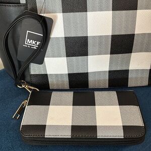 NWT - Black and white checked bag and matching wallet from Mia K. Collection. Vegan leather exterior with a back zip pocket, two deep side pockets and gold-tone hardware.