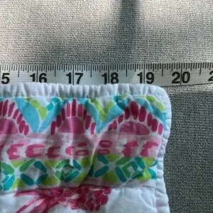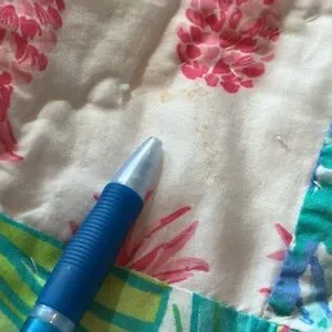 Never used Lilly Pulitzer colorful patchwork throw pillow sham. I had two of them but decided to use one as a throw pillow because they were SO big, two was too much for the bed. I cannot stress how large this is for a “pillow sham”-it fits 2 standard size pillows in it! So it looked better as a long throw pillow. Looks great with other Lilly comforter prints too- I used it with the Blue “pineapple Party” print! Measures approx. 36 x19. Colors are bright, and white. Small spot found as photoed. I’m not sure what it is, or if it’d wash out because this hasn’t been used or washed. If you have questions, please ask!open to reasonable offers