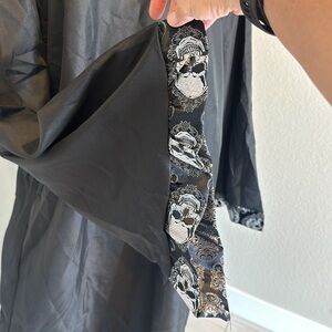 Full Length, Skull Printed Jacquard Trim Tunic With Attached Shawl And Hood