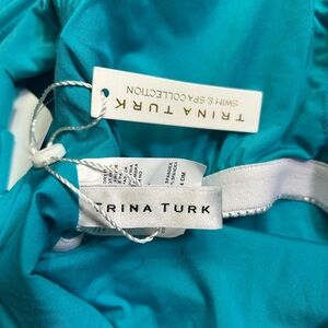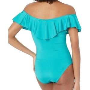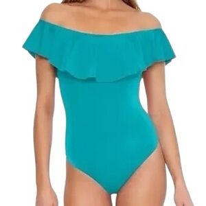 TRINA TURK MONACO turquoise off shoulder ruffle one piece swimsuit size 6 NWT