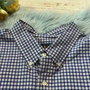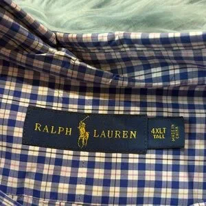 Ralph Lauren Blue Pink Check Button Down Shirt. This shirt is in good used. This a size 4XL TALL.