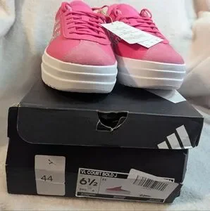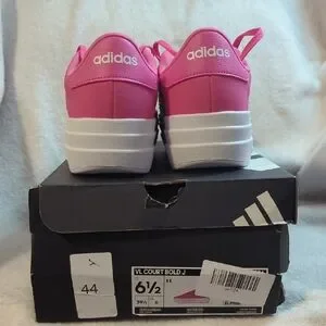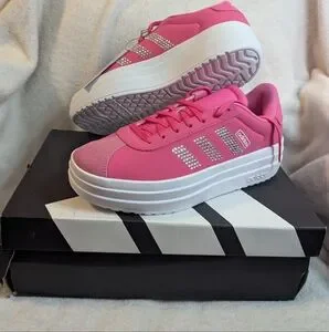 Stand out with these vibrant pink Adidas sneakers. Features a bold platform and sleek design.