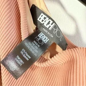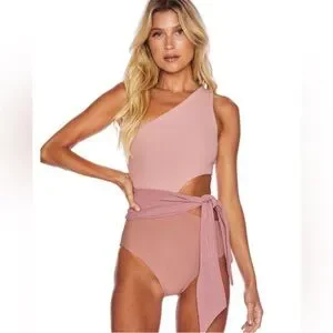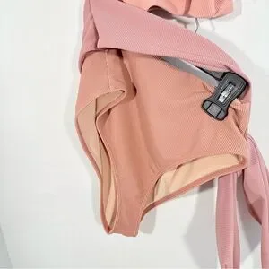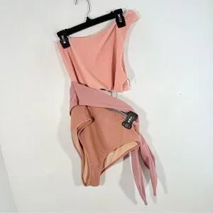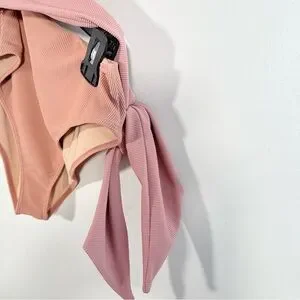 Beach Riot Carlie Blush Pink Ribbed One Shoulder Side Tie One Piece Swim Medium