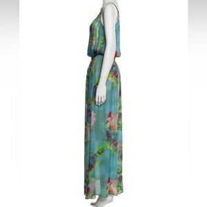 EUC. 100% silk, striking turquoise, floral pattern. Then shoulder straps, scoop, neck, and back, but front detail, elasticized waist, knee-high slits on both sides. Gorgeous vacation wear. I wore it once on a trip to Jamaica. Women’s size extra small.