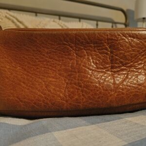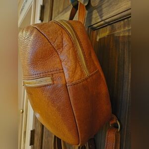 This is a retired PLG style in a retired color. This is the Portland Leather Goods "Essential" Backpack in the color "Sedona". this is a very squishy, soft, pebbly leather. Excellent quality bag. This has been used frequently. Has normal scuffs and scratches and a few small ink stains on the inside. Normal marks on the strap where buckle is. Still in Good condition with lots of life left.
