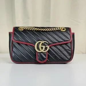 Gucci Black Leather Medium Marmont Flap Shoulder Bag