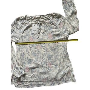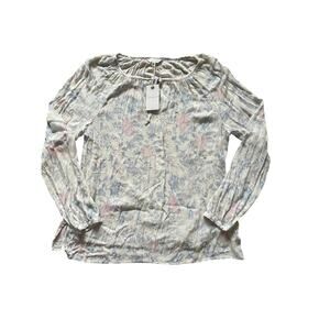Lucky Brand White shirt with soft pink and blue floral pattern with Tie Neck and half button blouse