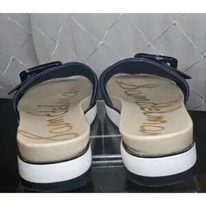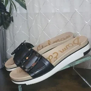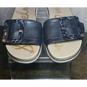 🔥 Sam Edelman Ariane Womens Sz 9 1/2 Black Leather Buckle Slide Sandals Shoes