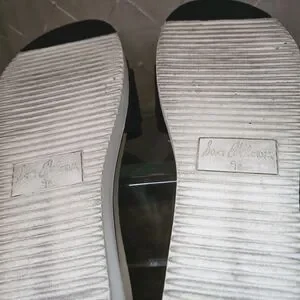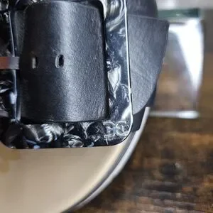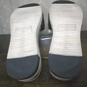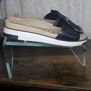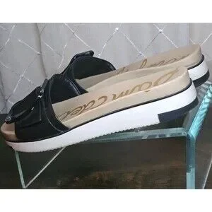 The Sam Edelman Ariane Women's Sz 9 1/2 Black Leather Buckle Slide Sandals are a stylish and comfortable choice for the summer season. Featuring a slip-on closure and low heel, these sandals are perfect for everydok and buckle accent add a touch of sophistication to the solid pattern, making them versatile for various outfits. The flat heel and slide style provide good support and ease of movement, while the brand's reputation ensures high quality and durability. Overall, these sandals are a must-have addition to any woman's shoe collection.