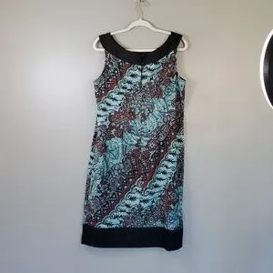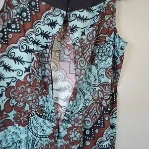 Chic midi dress with a striking floral design. Features a blend of green and brown tones. Sleeveless with buttoned and zippered back. EUC. Size 14W