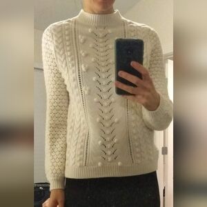 Sezane Ivory Cable Knit Turtleneck Sweater